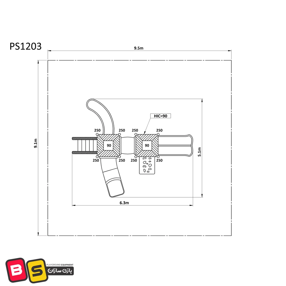برای نصب سرسره پارکی 1203 به فضای کافی نیاز است. ابعاد خود سرسره 630×510×350 سانتیمتر است و برای ایمنی کامل، فضای ایمنی اطراف آن باید 950×910×350 سانتیمتر باشد. این ابعاد مناسب برای فضای باز، حیاط و باغ است و میتوان آن را به راحتی در محیطهای مختلف نصب کرد.